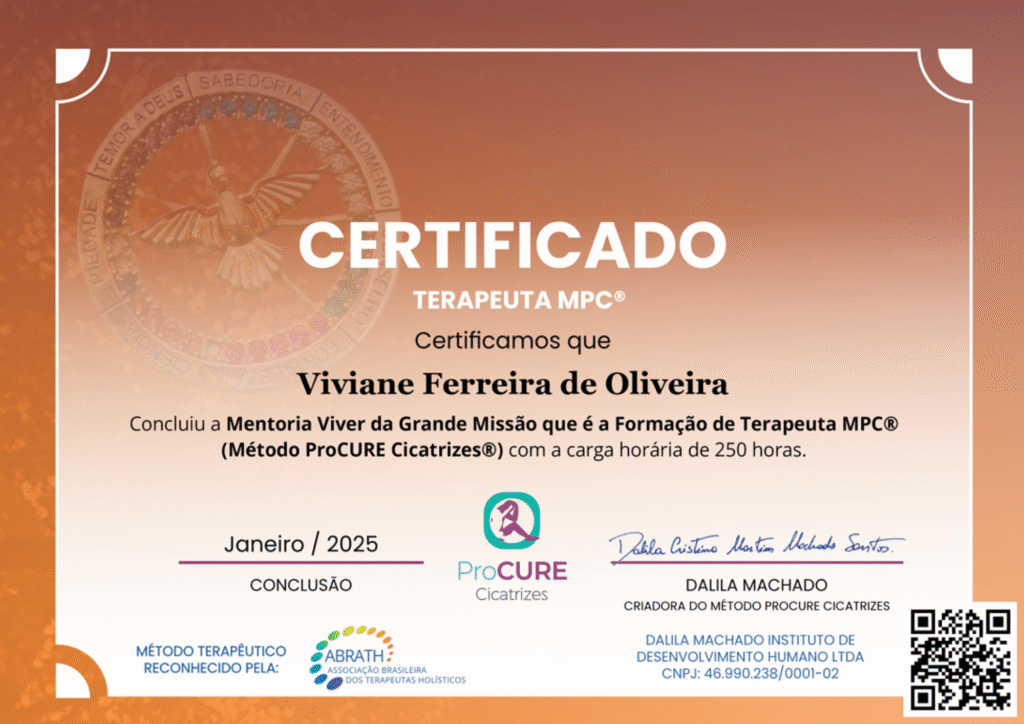 Com a minha formação integral em medicina oriental e germânica, hipnose clínica, PSYCH-K e psicanálise, consigo identificar o seu trauma e ressignificá-lo para que o seu organismo encontre o equilíbrio e se recupere mais rápido.